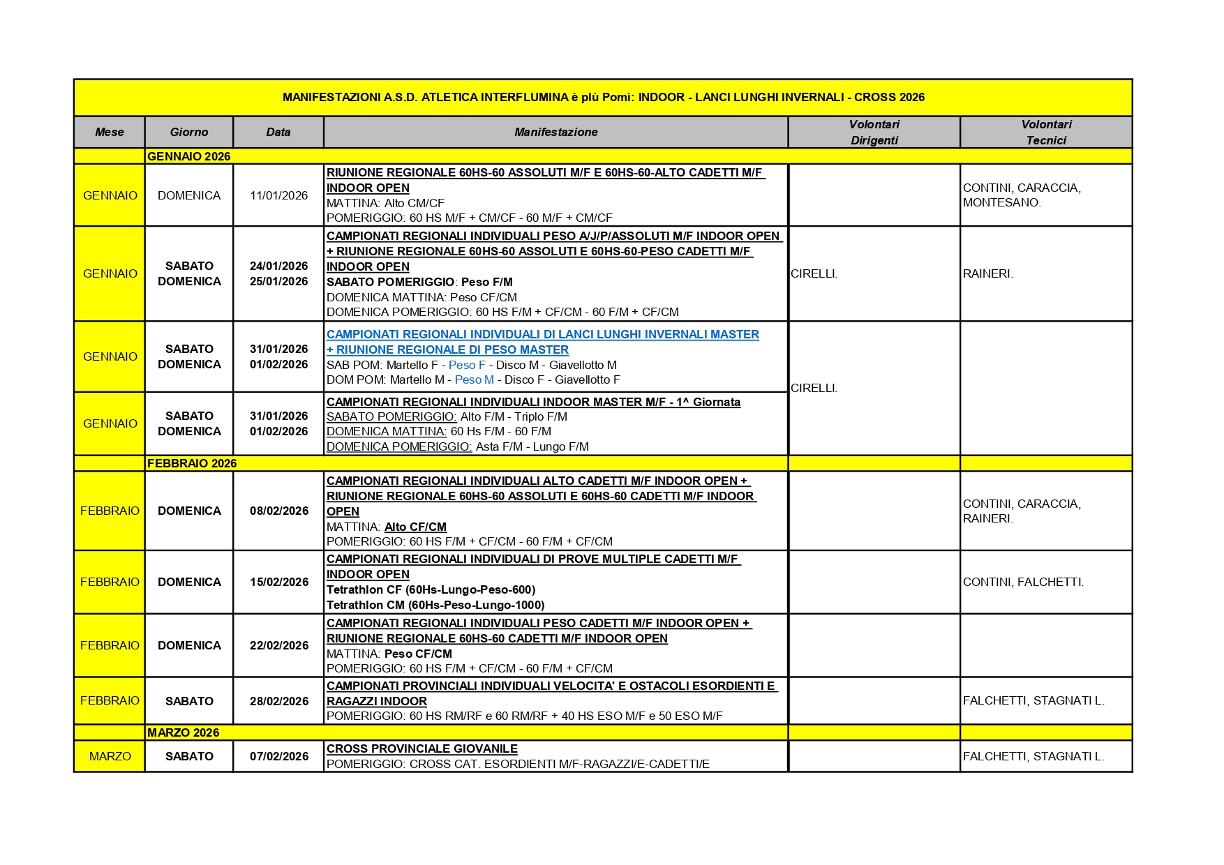 PROGRAMMA GARE INDOOR COMPLETO GENNAIO E FEBBRAIO 2026