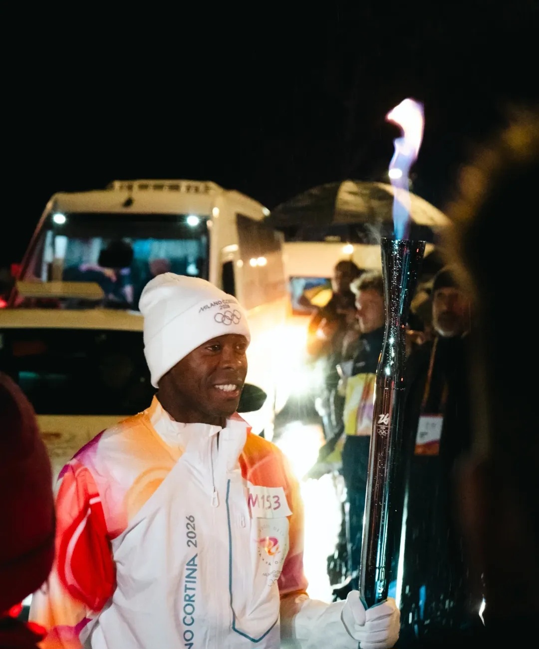 Fausto Desalu tedoforo a Milano - Cortina 2026